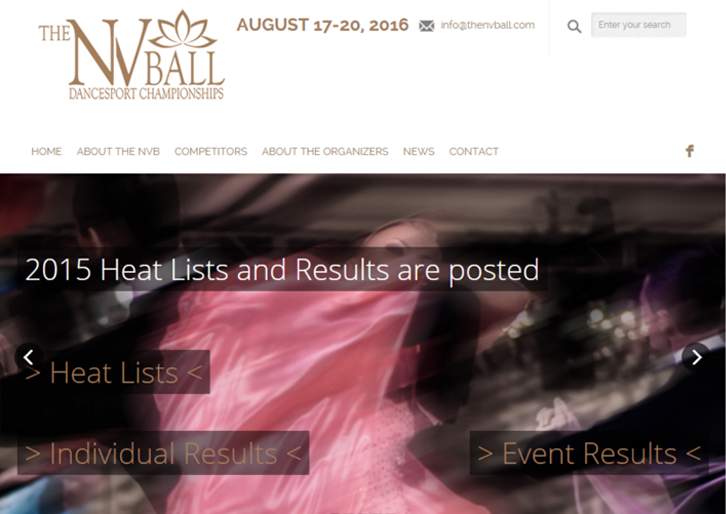 Once I developed the brand, it was time to build the website. Due to the NV Ball's old website having a good deal of content on it, I felt that the best approach was to build a skeleton of the site before making decisions regarding content. I built the site's infrastructure and created the templates for all of the pages along with sample elements showcasing how the content would be displayed. Once my design decisions were approved by the competition organizers, I carried over the existing content from the old site that was earmarked to be kept.